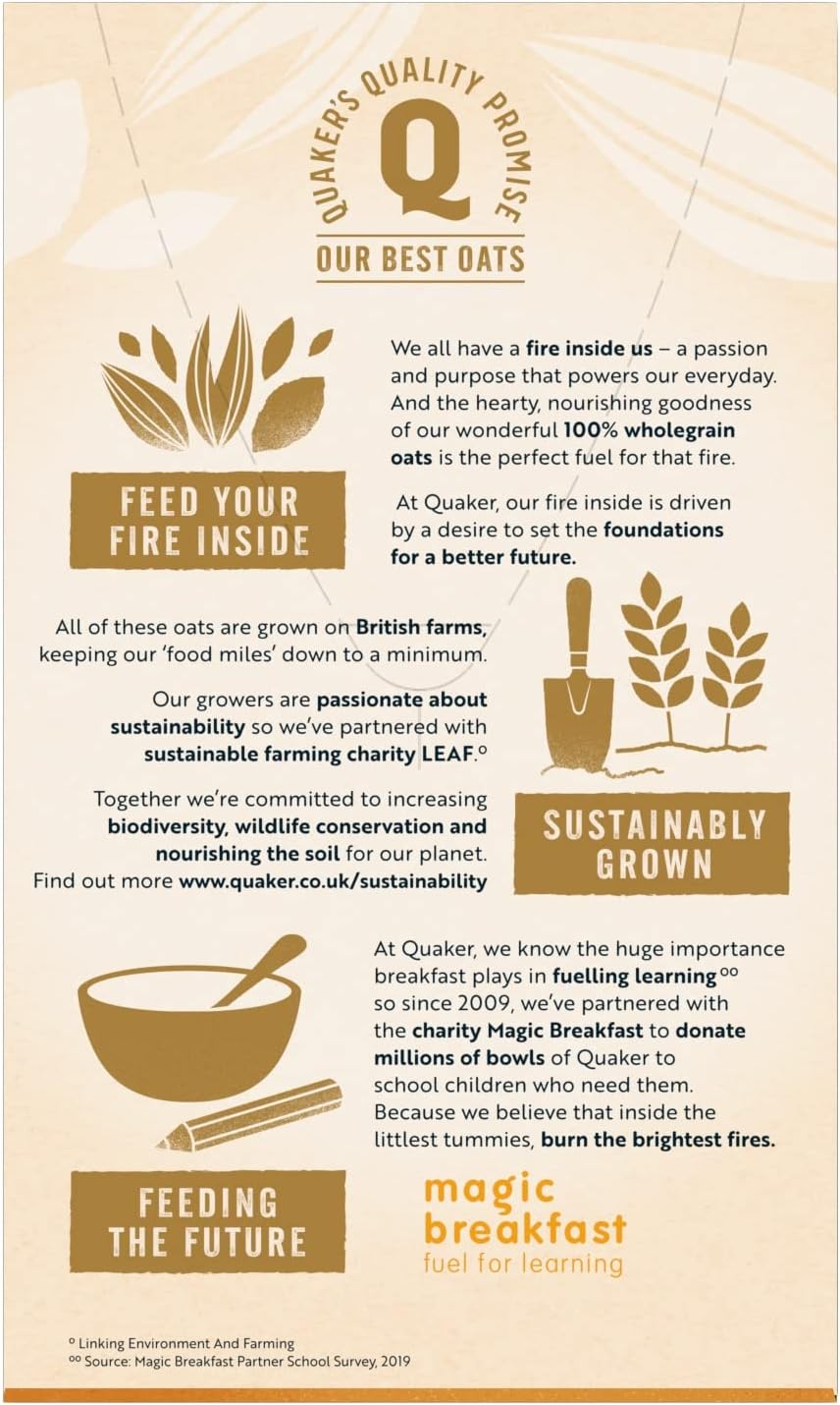 • By appointment to Her Majesty the Queen, Suppliers of Quaker Food Products
