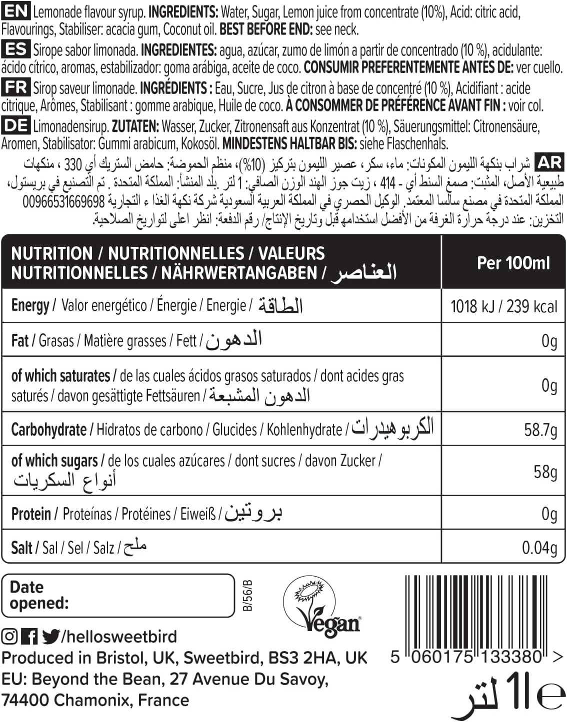 - 66 servings per 1-litre bottle