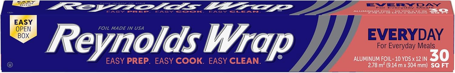 • Reynolds Classic Kitchen Foil | 304mm x 9.14m Aluminium Foil Roll for Cooking, Baking & BBQ