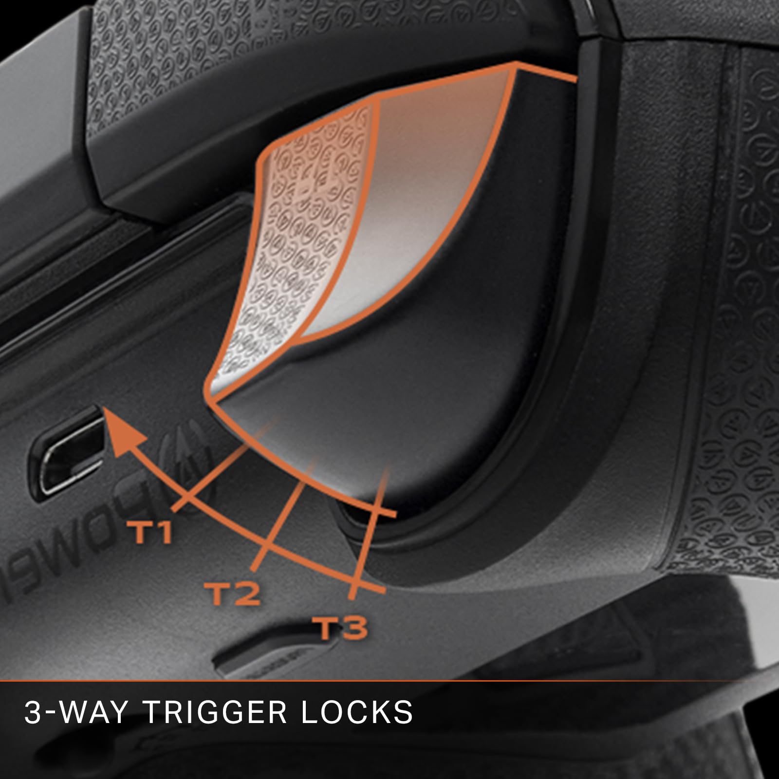 - 3-Way Trigger Locks – Customize trigger travel distance for faster response in FPS or full range for racing games