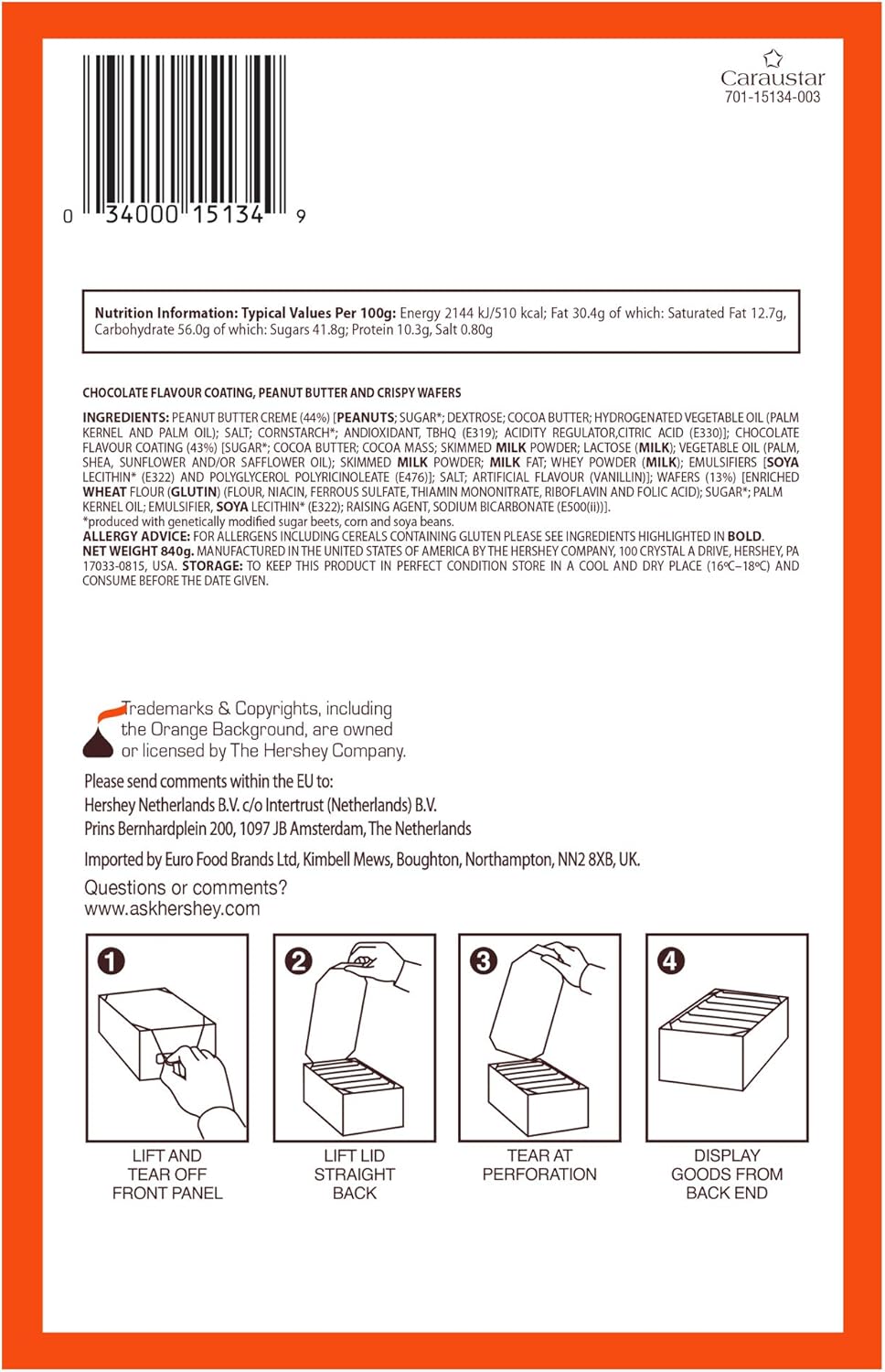 - Ingredients include peanut butter crème (44%), milk chocolate (35%), chocolate-flavoured coating (8%), and wafers (13%)