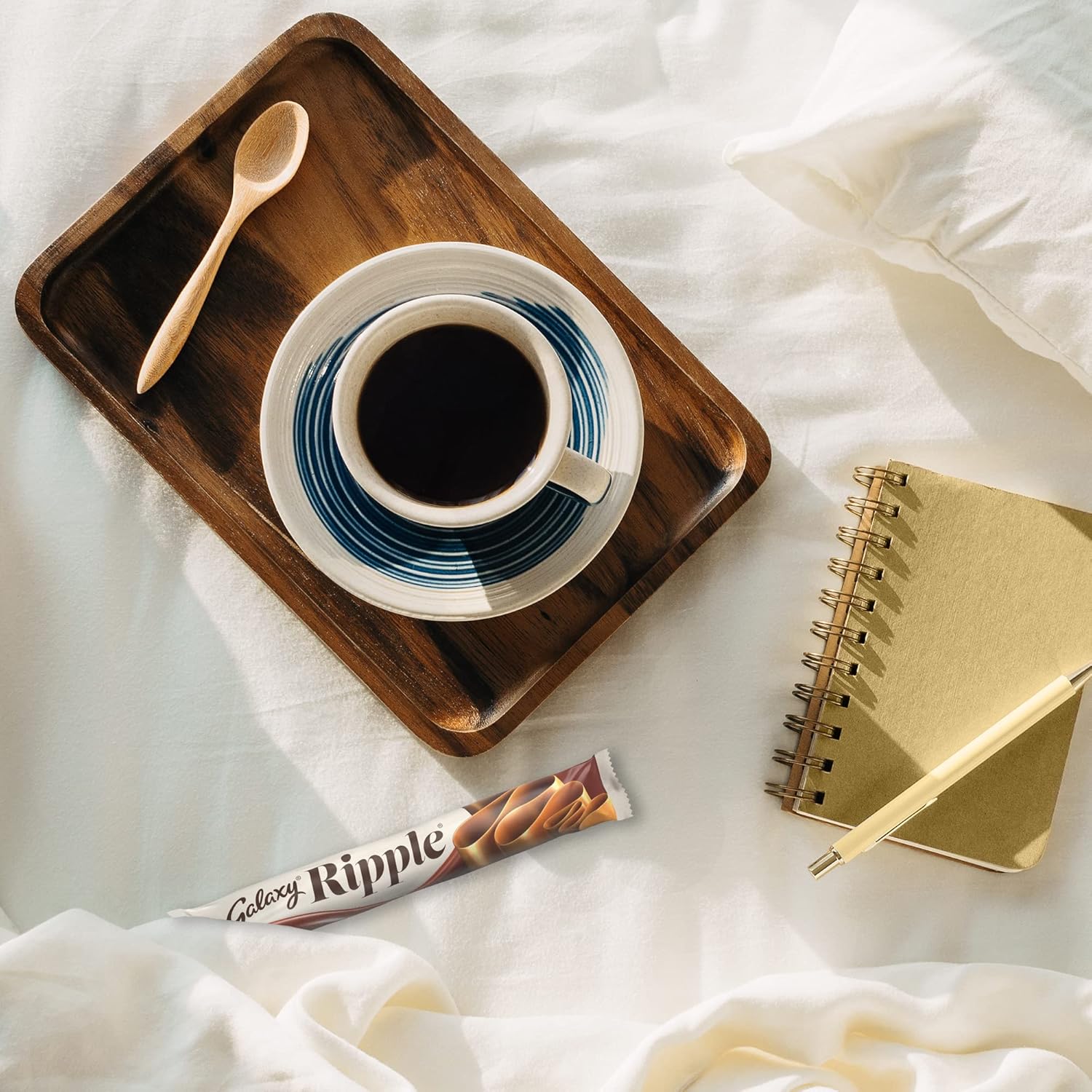 Galaxy Ripple has style as well as substance. A raffishly ruffled milk chocolate centre is enrobed in smooth Galaxy milk chocolate, creating a luxurious texture and taste. This multipack contains four 30g bars, ideal for sharing or keeping on hand for a sophisticated chocolate treat whenever cravings strike.
