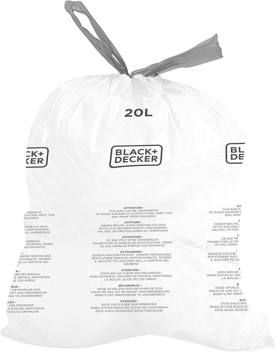 BLACK+DECKER 20L Drawstring Bin Liners 20 Pack - White