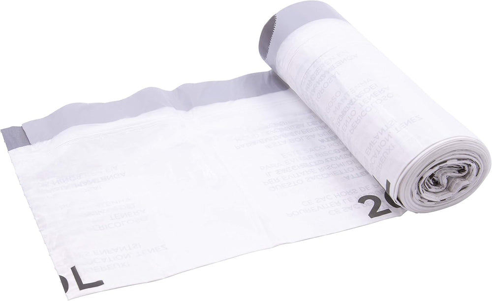 This pack includes 20 white drawstring bin liners, ideal for home or kitchen use. Combining strength, functionality, and ease of use, these bin liners simplify waste management. Safety Warning: THIS BAG CAN BE DANGEROUS! TO AVOID DANGER OF SUFFOCATION, KEEP THIS BAG AWAY FROM CHILDREN