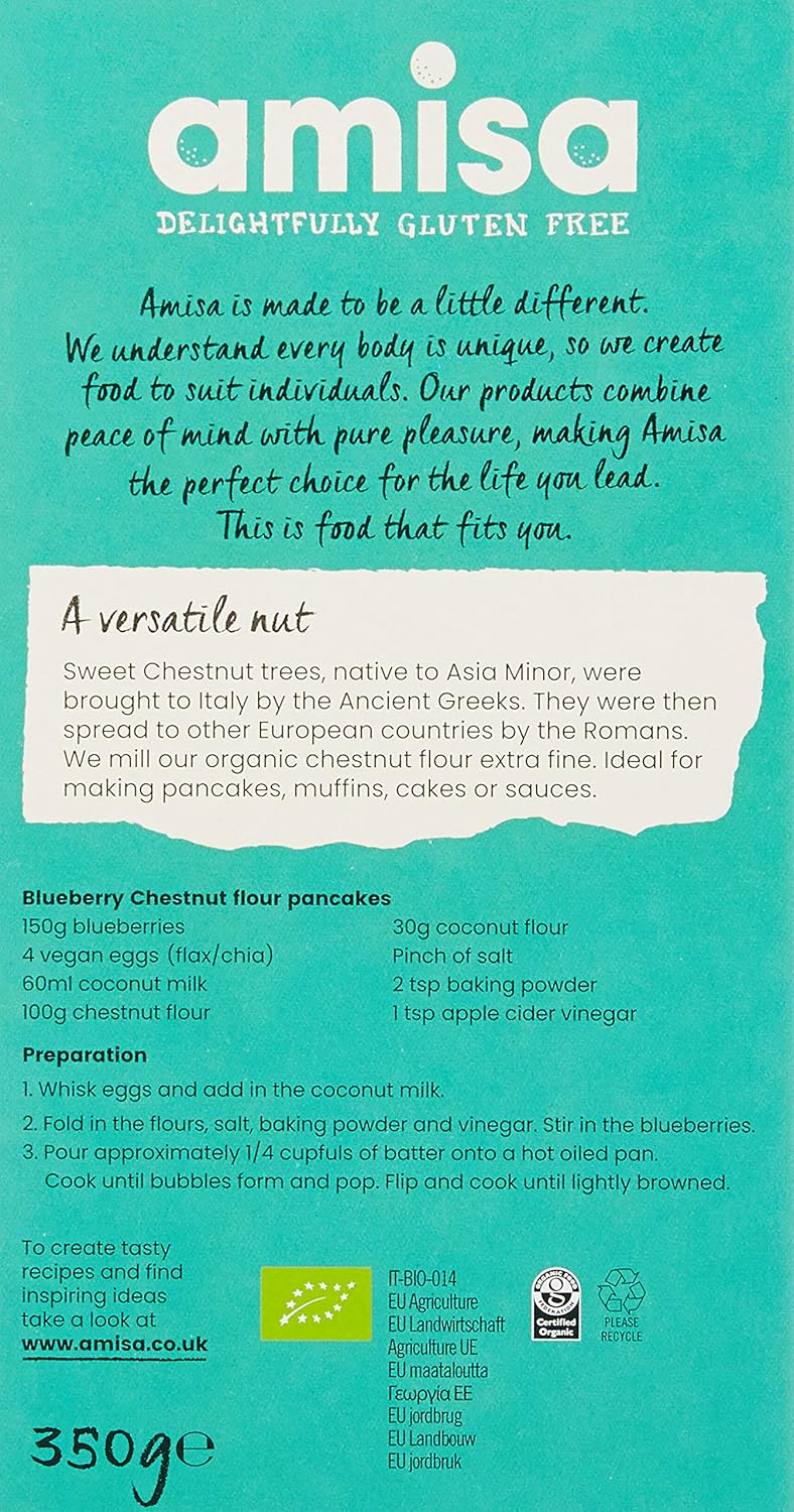 Amisa Gluten Free Organic Chestnut Flour offers a naturally sweet and nutritious alternative to traditional flours, ideal for gluten-free and organic baking. Made from premium organic chestnuts, it delivers a rich, slightly nutty flavor that enhances both sweet and savory recipes.