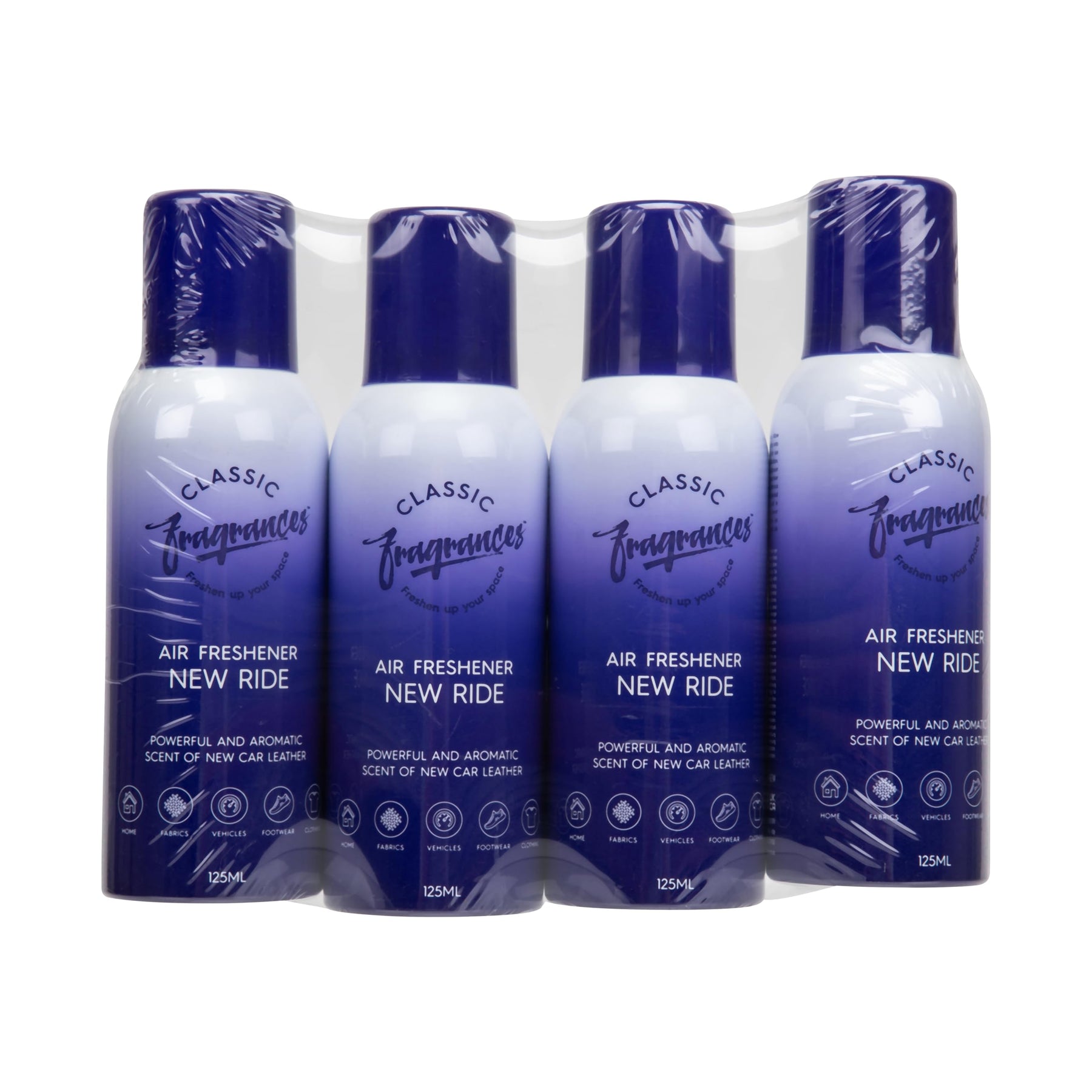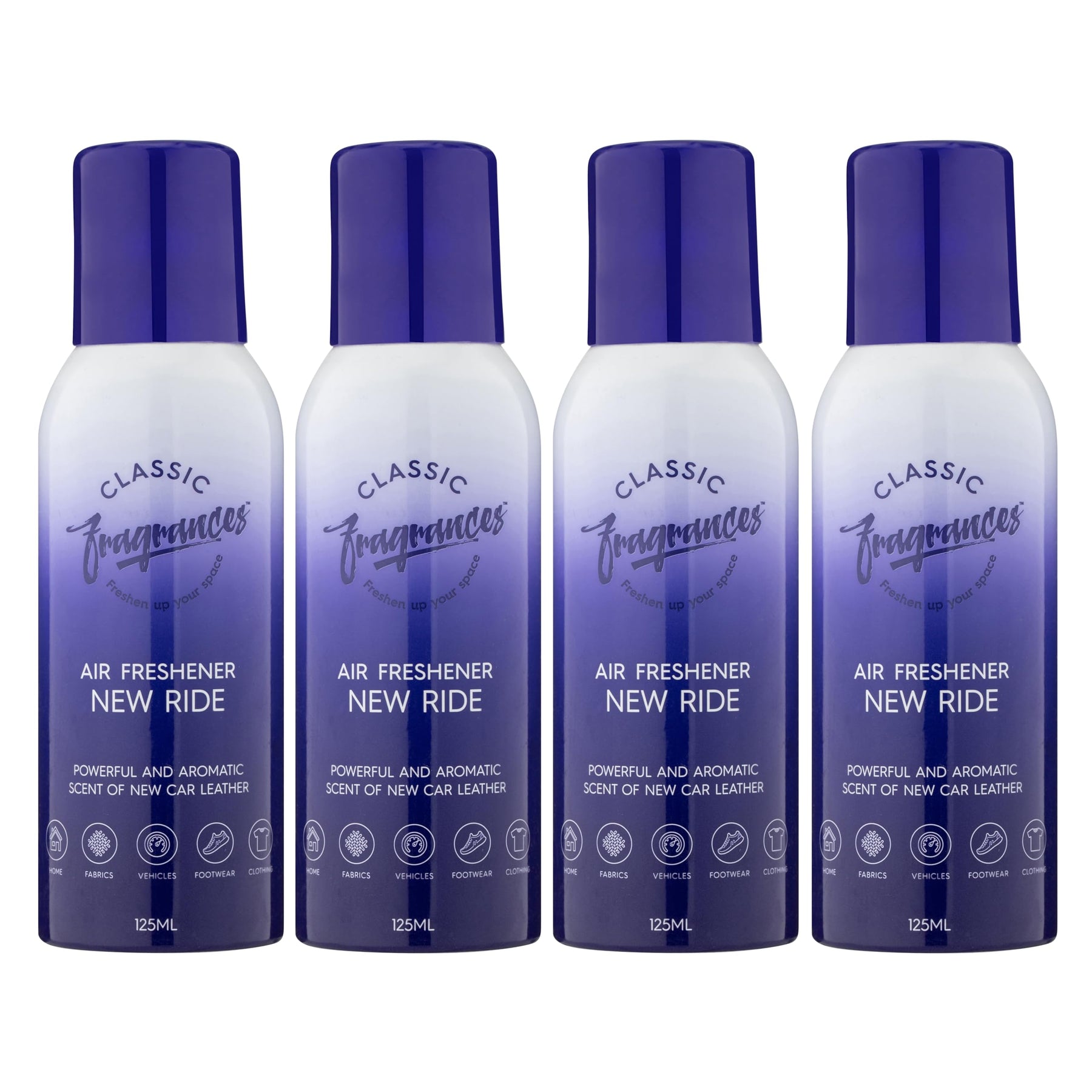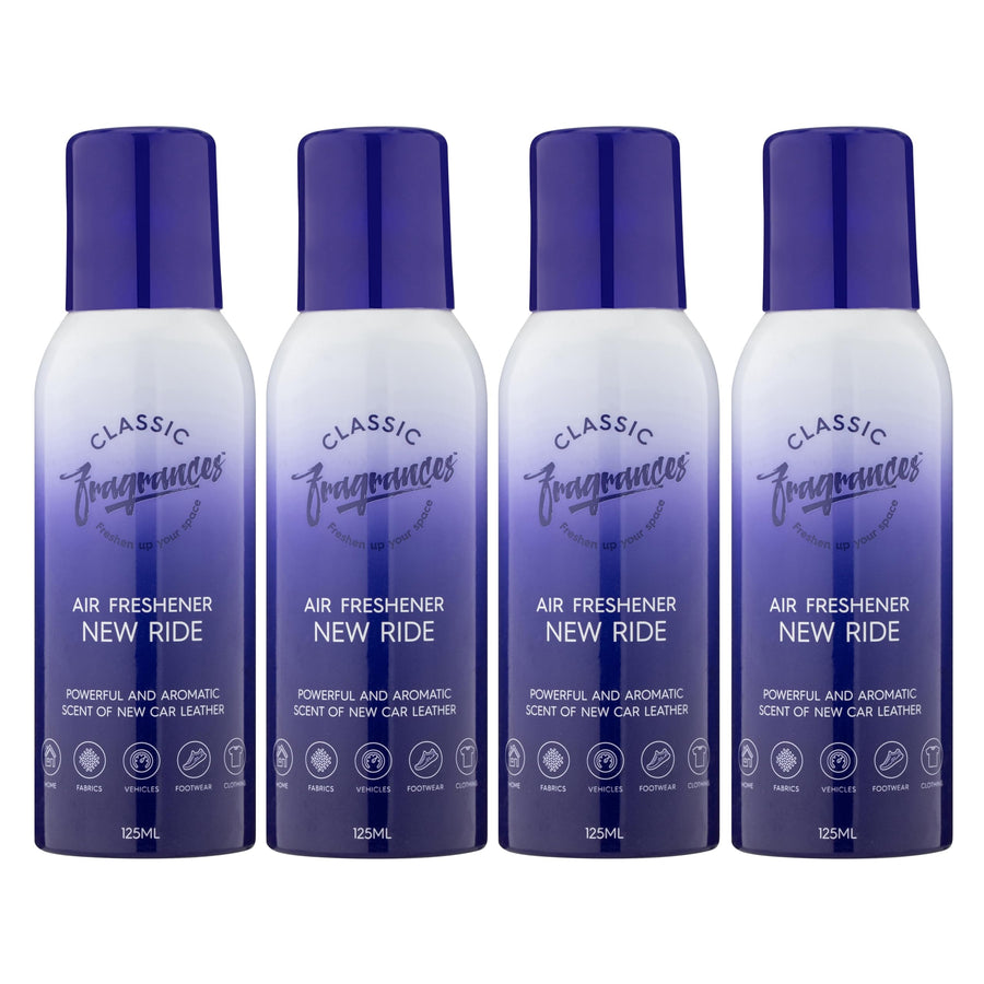 • 4-Pack Convenience: Includes four 125ml New Ride air fresheners for extended use at home, in the car, or on the move.