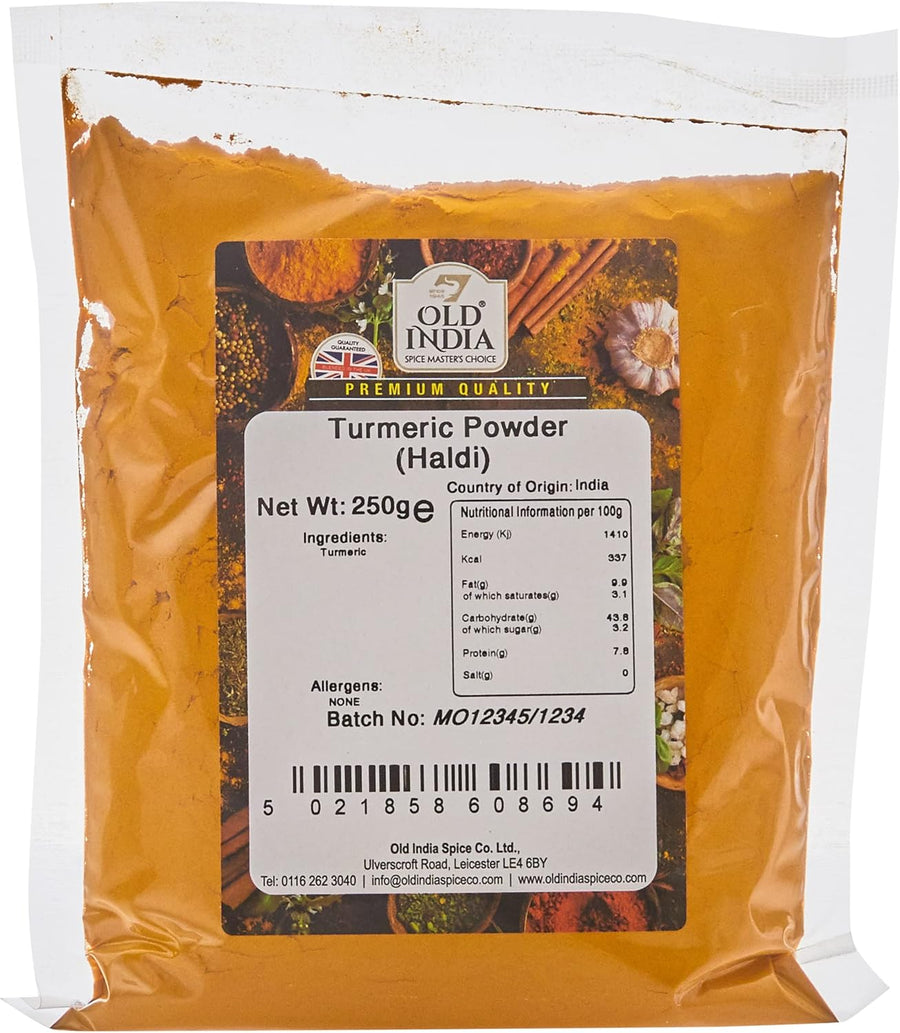 Old India Turmeric Powder, commonly known as Haldi, is a staple spice in Indian cooking, prized for its vibrant golden color, earthy flavor, and traditional role in culinary and wellness practices. Sourced for quality and purity, this 100% natural turmeric enhances curries, lentils, rice dishes, soups, stews, and vegetable preparations with authentic taste and rich hue.