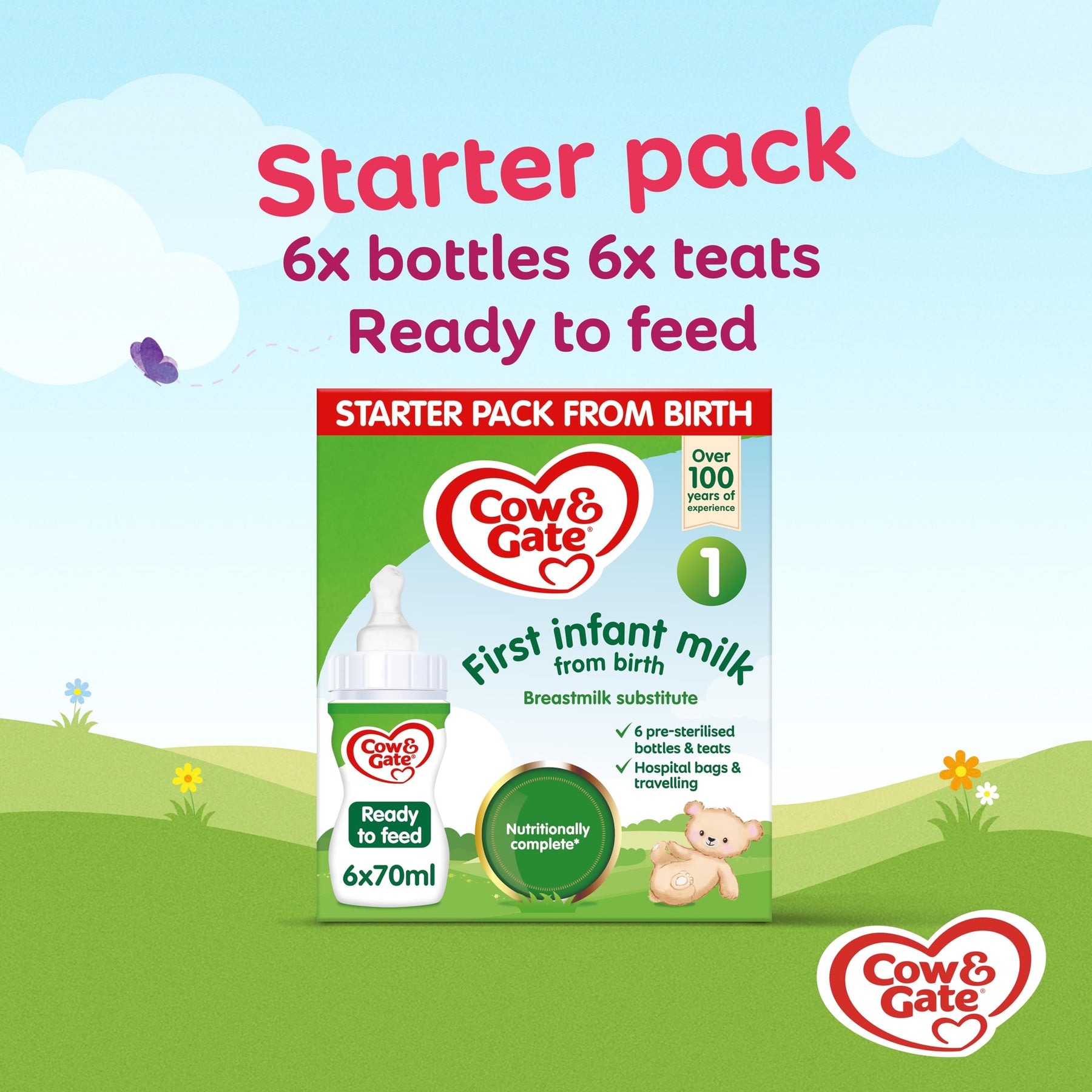 Cow & Gate First Infant Milk Starter Pack is a nutritionally complete, ready-to-feed formula designed for combination and bottle-fed babies from birth. As a breastmilk substitute developed with over 100 years of expertise, it supports healthy growth and development with essential nutrients including nucleotides, oligosaccharides, and LCPs. This convenient starter pack contains no palm oil and is suitable for newborns, providing a trusted option for parents.