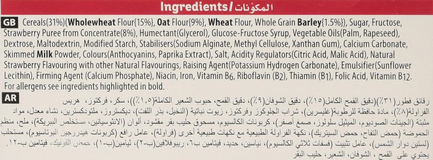 Enjoy the delicious taste of Kellogg's Strawberry Nutri-Grain Bars, soft baked cereal bars with a fruity strawberry filling. Made with wholegrain and fortified with 6 B-vitamins and iron, these individually wrapped bars are perfect for a quick breakfast or a nutritious snack on the go.