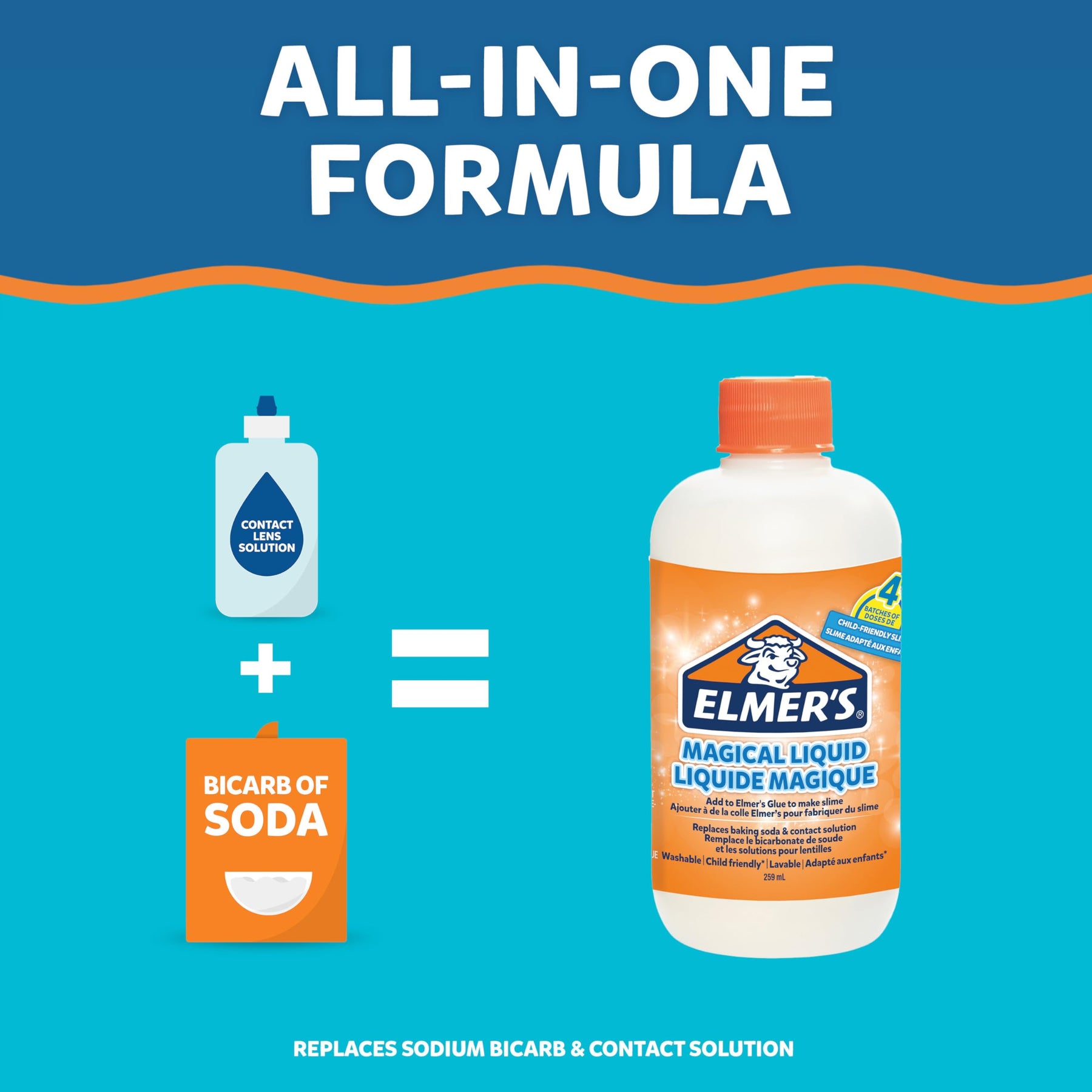 • Magical Liquid slime activator transforms glue into stretchy, playful slime