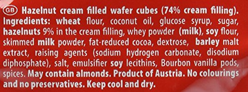 Ingredients:- Wheat flour, coconut oil, glucose syrup, sugar, hazelnuts 9% in the cream, whey powder (milk), soy flour, skimmed milk powder, fat reduced cocoa, dextrose, barley malt extract, salt, raising agents (sodium hydrogen carbonate, disodium diphosphate), emulsifier soy lecithins, Bourbon vanilla pods, spices.
