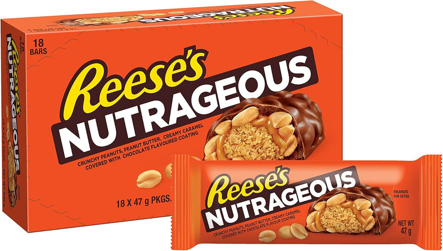 Reese's Nutrageous Peanut Butter Bar – Pack of 18 (47g Each)