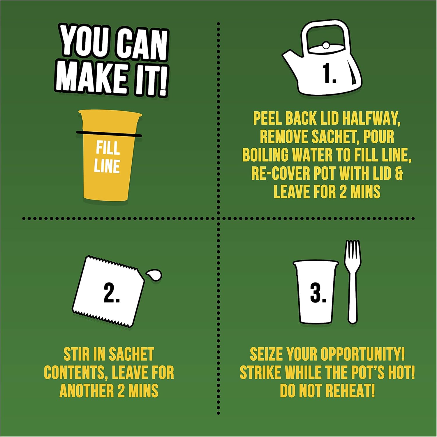 Perfect for quick, satisfying meals, Pot Noodle King Chicken & Mushroom delivers a hearty instant noodle experience in a larger 114g pot. Ready in just 4 minutes, these noodles are ideal for busy lifestyles, camping trips, or family snacks. Simply add boiling water, wait 2 minutes, stir in the flavour sachet, and enjoy after another 2 minutes.