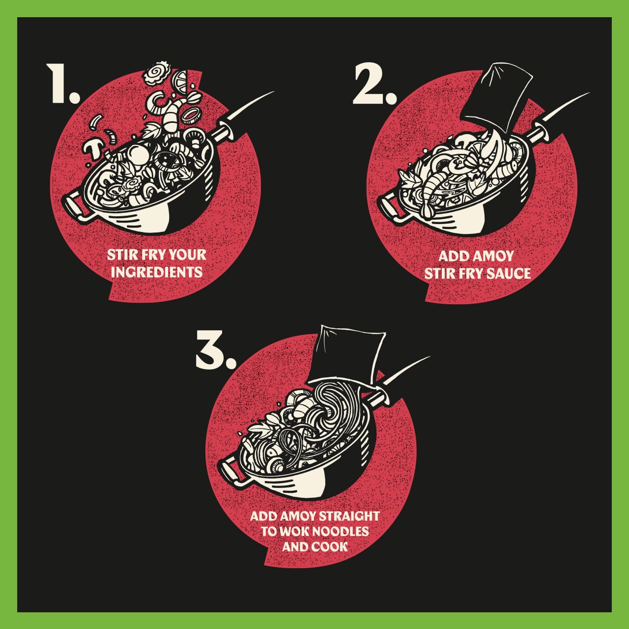 - Compatible with Amoy teriyaki and sesame stir fry sauces
