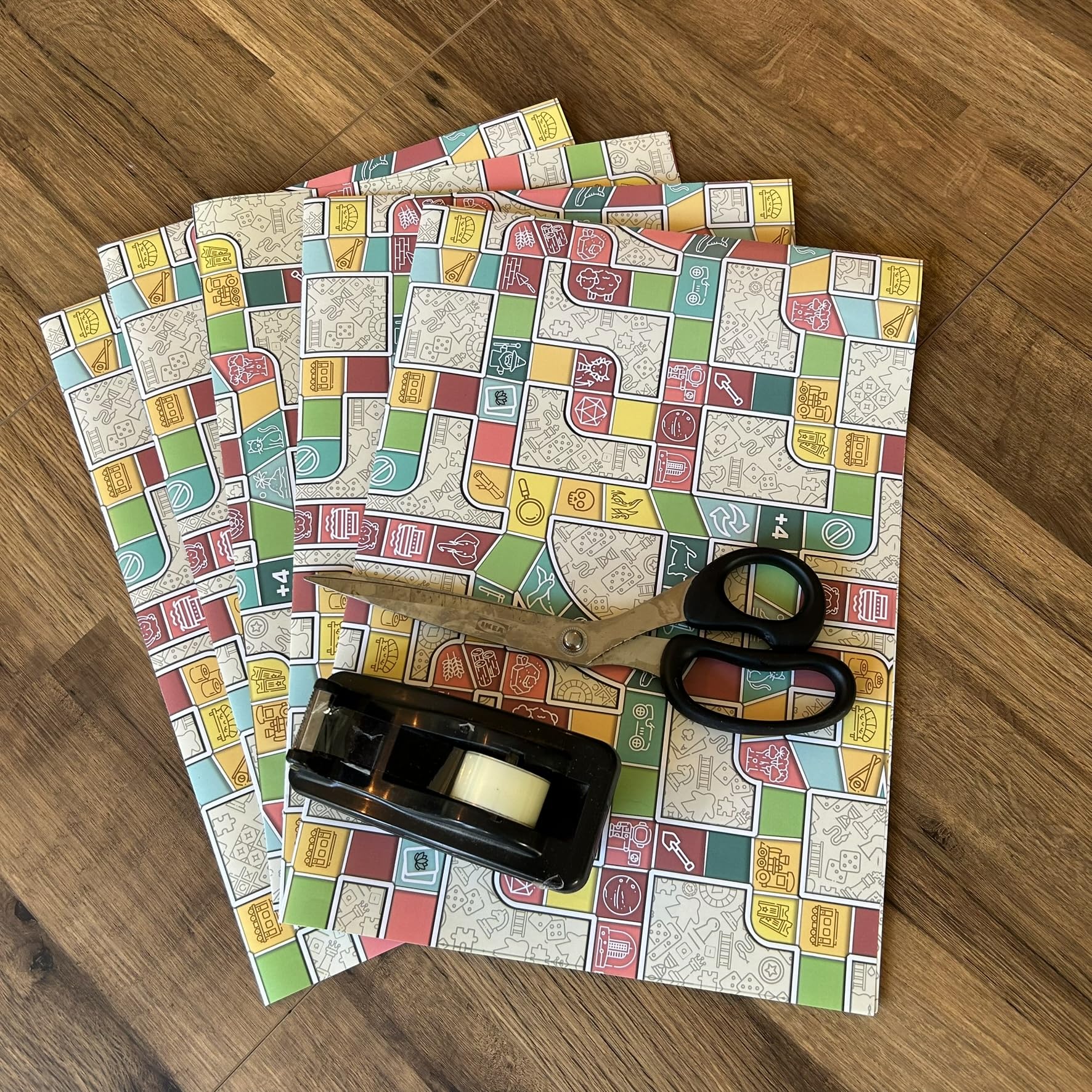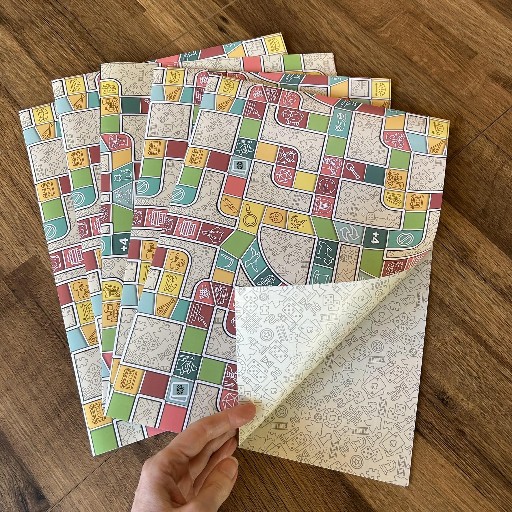 Elevate your gifting with Spot the Game Gift Wrap by Loke Battle Mats, a premium wrapping paper designed for fans of board games and tabletop adventures. This unique wrap features an intricate 'spot the game' theme, hiding visual clues inspired by classic and modern board games, making it a fun puzzle as well as a festive wrap.