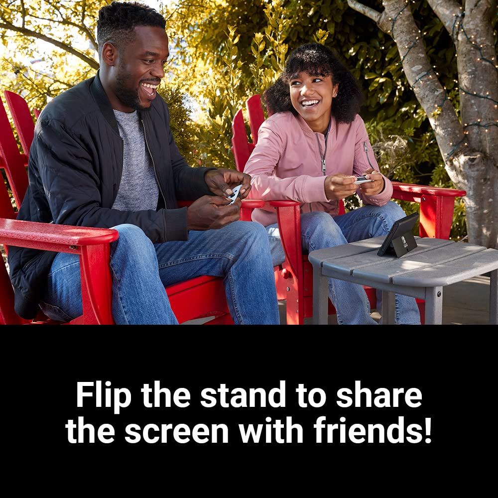Flip out the stand and share the screen with a friend for instant competitive or cooperative multiplayer. Dock the system to enjoy HD gaming on your TV. With two USB ports, an HDMI port, and a wired LAN port, the dock supports versatile connectivity. Play your favorite games solo or with others, wherever you are.