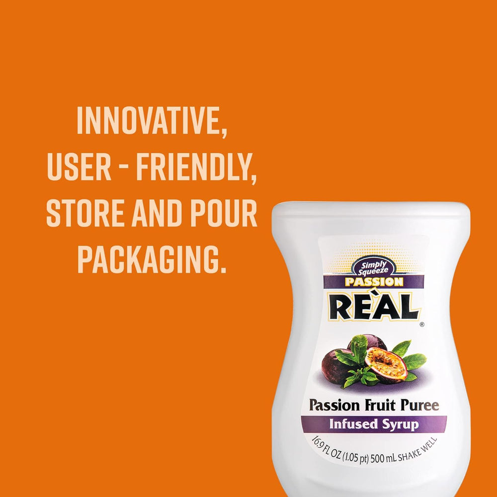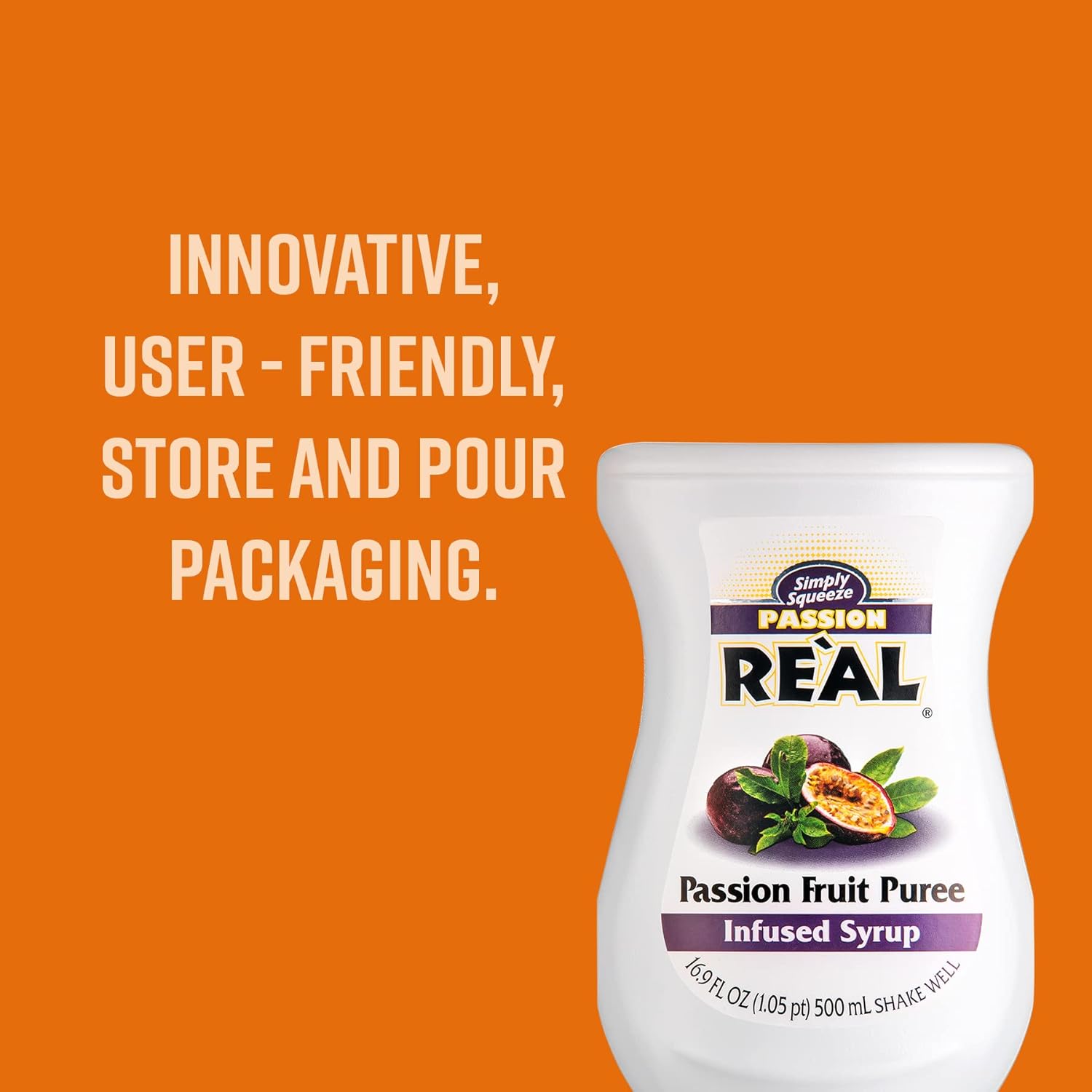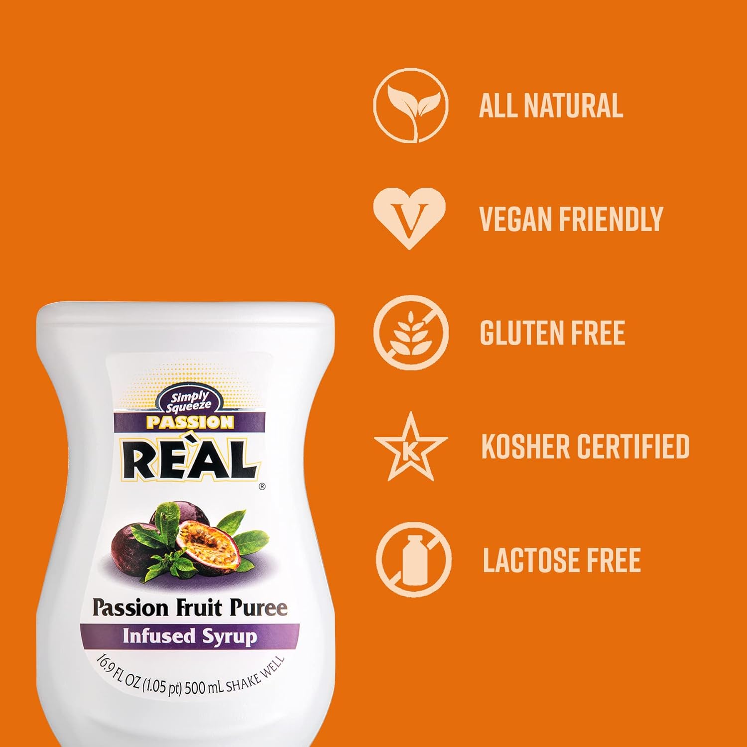 RE"AL Syrups Passion Fruit Puree Infused Fruit Syrup for Cocktails, Cooking & Baking