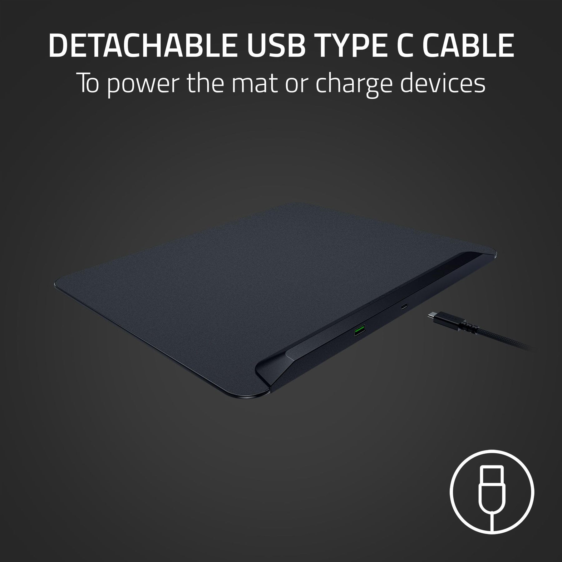 - Detachable USB Type-C cable for easy power connection or charging USB-C devices like wireless mice