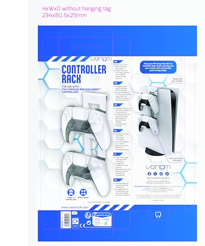 Keep your gaming setup neat and organized with the Venom PS5 Controller Rack. This innovative, space-saving accessory securely hooks onto the side of your PlayStation 5 console, providing convenient storage for up to two DualSense controllers.