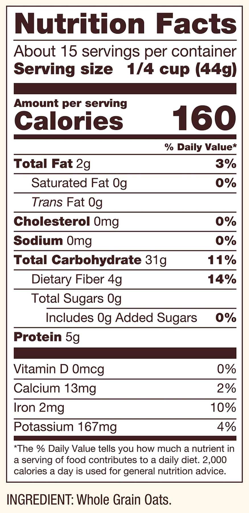 - Made from 100% whole grain oats for maximum nutrition and fiber