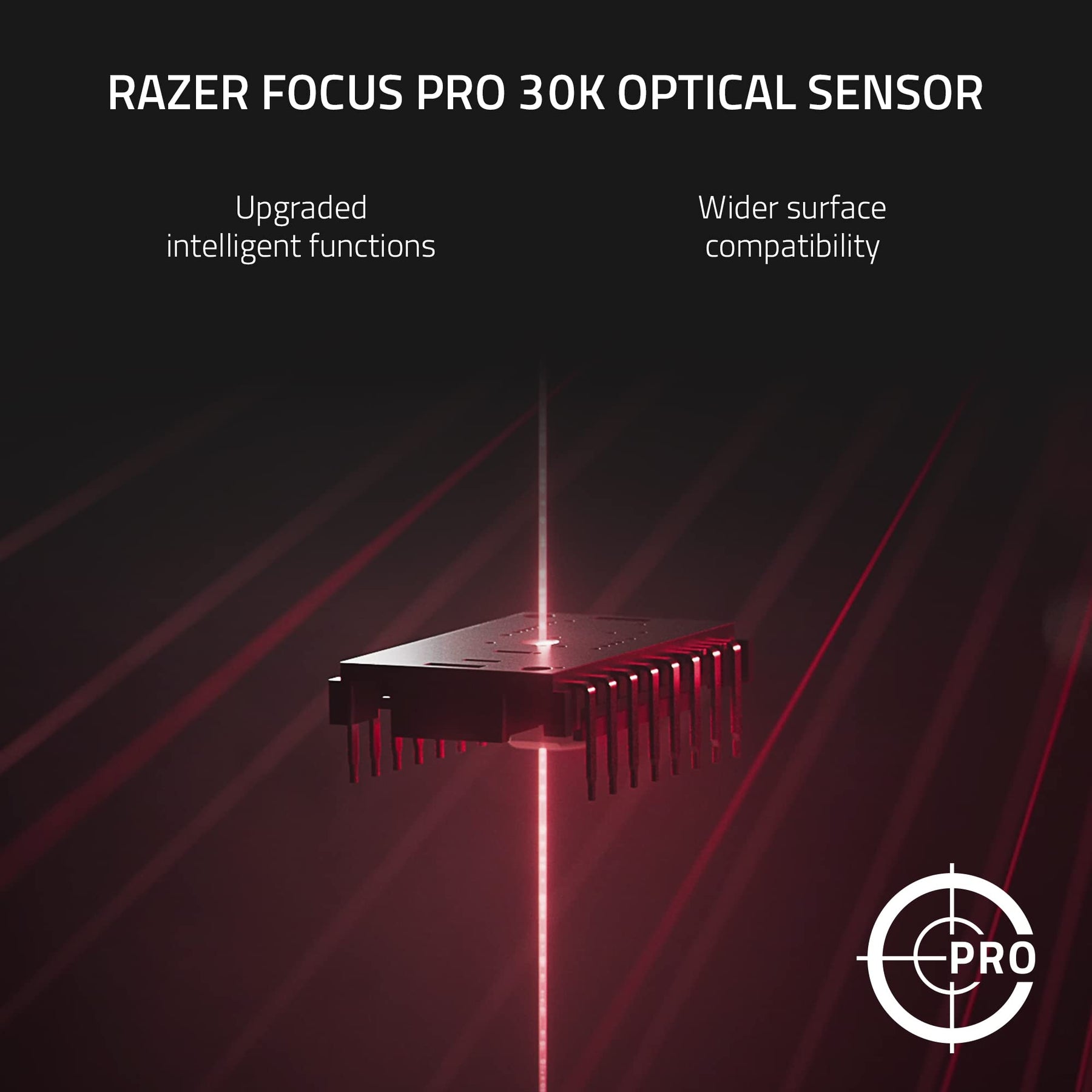 • Razer Focus Pro 30K Optical Sensor for precise tracking on diverse surfaces, including glass