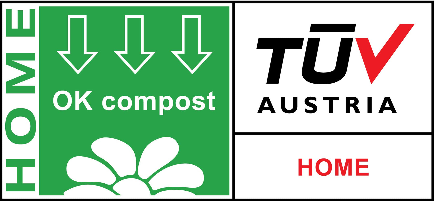 - Certified for both industrial and home composting – meets EN13432 and TUV Austria (OK Compost Home) standards