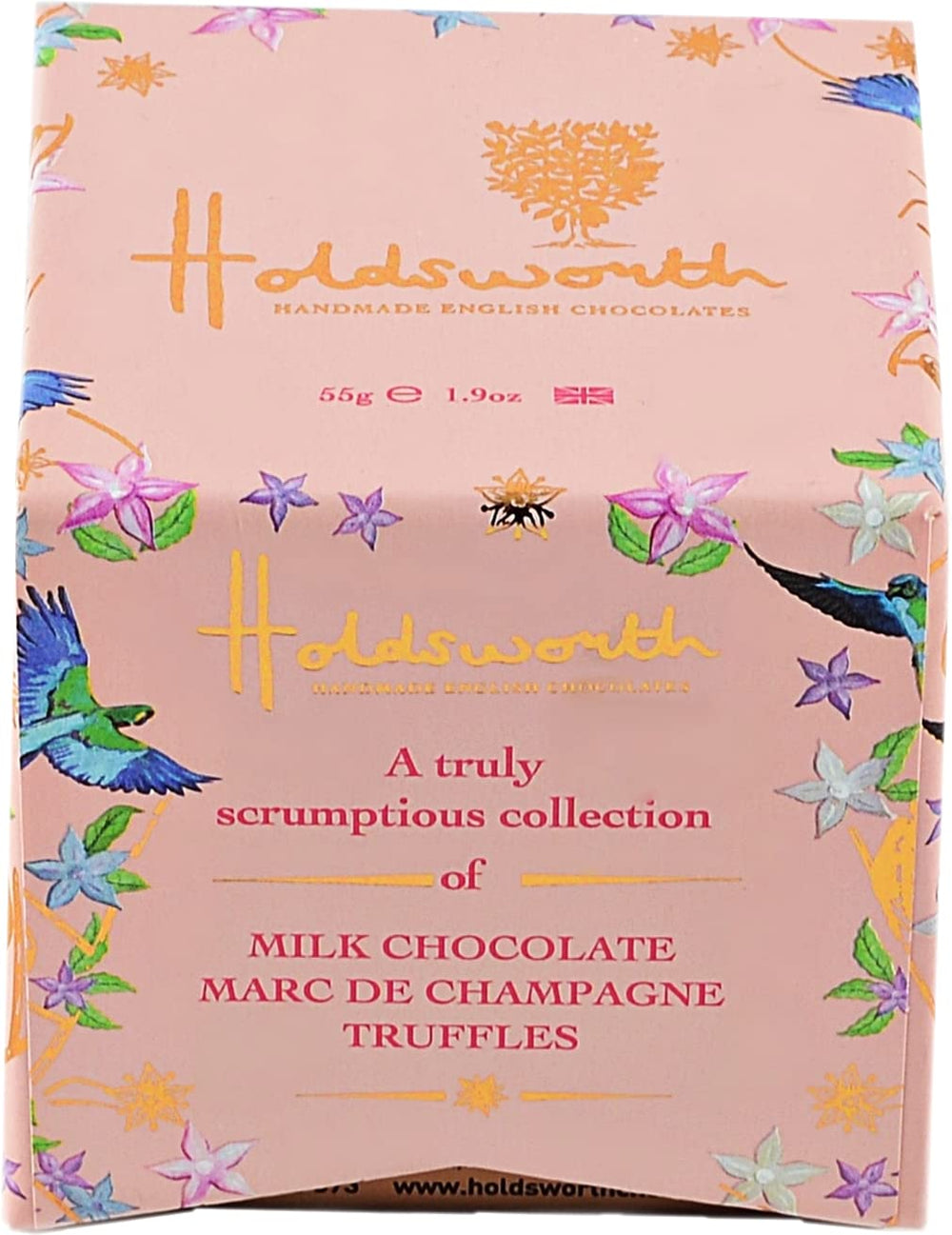 - Handmade Marc de Champagne truffles coated in creamy milk chocolate