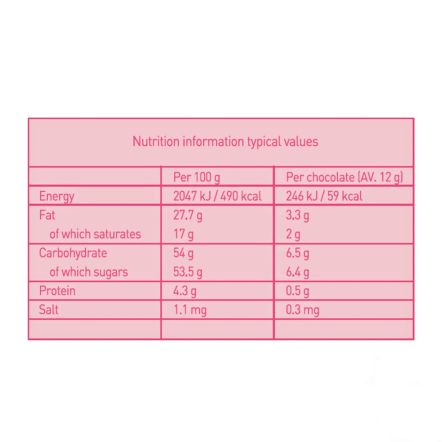 - Ingredients: Milk chocolate (59% cocoa), dark chocolate, butter (MILK), fondant (WHEAT), Marc de Champagne (4%), neutral spirit