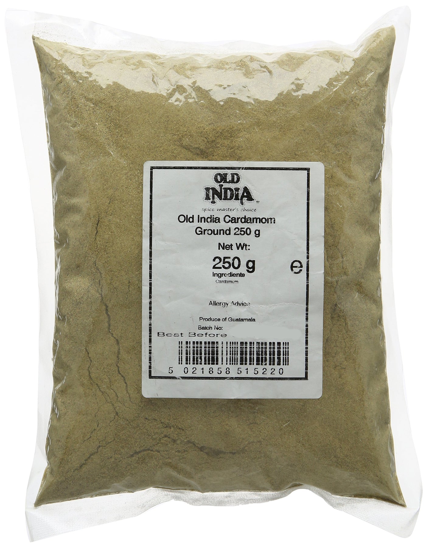 Packaged in a heat-sealed bag, it maintains optimal flavor and aroma for up to two years, making it a reliable staple for your kitchen. Each order includes one 250 g pack of Old India Cardamom Ground, part of a comprehensive range of over 400 herbs, spices, and seasonings available under the Old India brand.