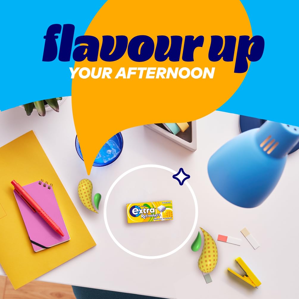 Stay fresh and confident throughout the day with Extra Refreshers Tropical Flavour Sugar-Free Chewing Gum. These cube-shaped gum pieces feature a crisp outer shell that gives way to a soft, chewy center, delivering a burst of tropical flavor with every bite. Perfect for on-the-go freshness, this bulk pack ensures you're always ready for anything—whether it's a busy workday, study session, or social outing.