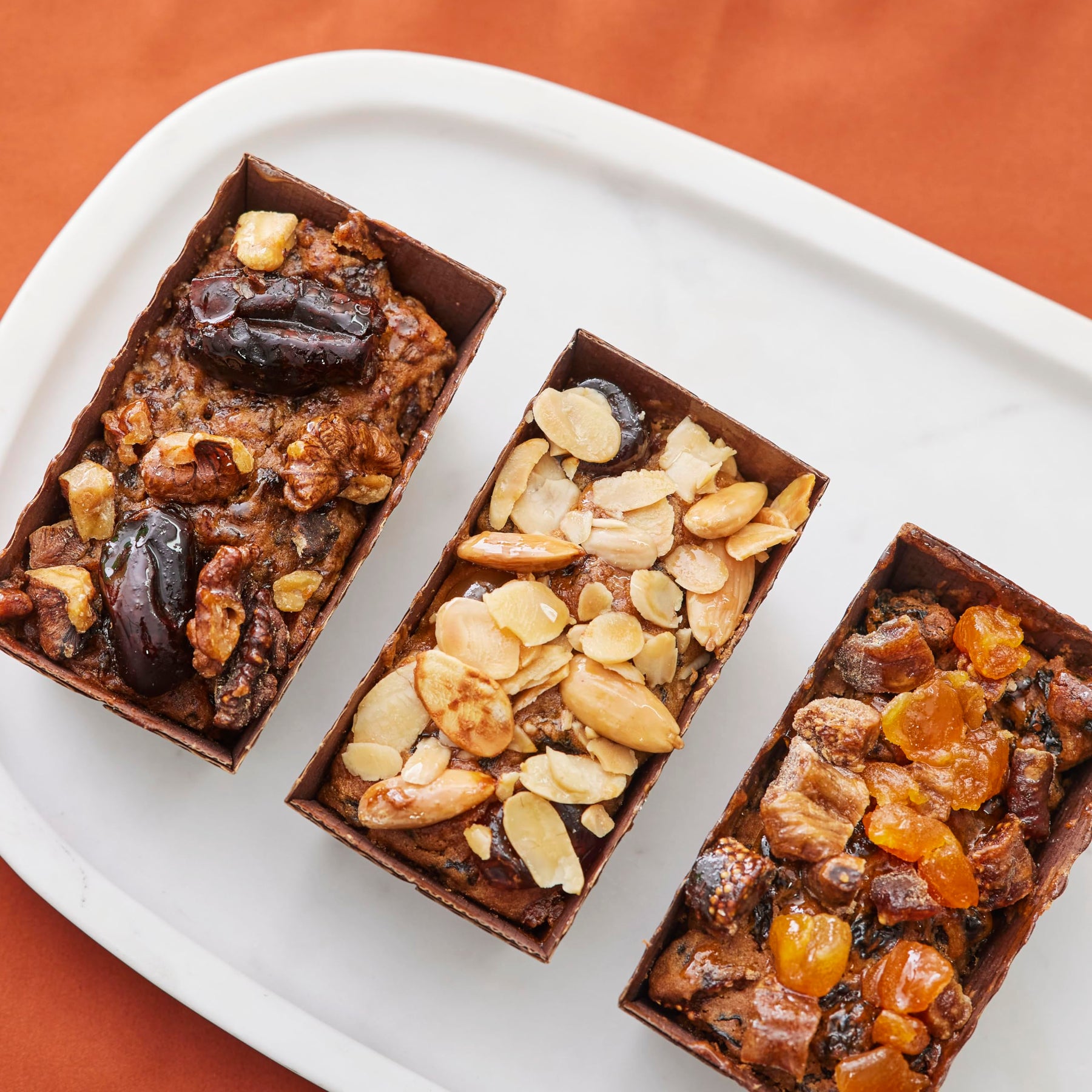 • Three signature mini loaf cakes: Cherry & Almond, Date & Walnut, and Fig & Apricot