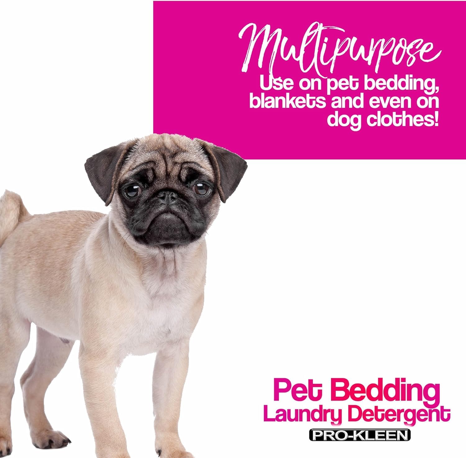 Pro-Kleen Pet Bedding Laundry Detergent deeply cleans pet bedding, blankets, and soft toys, removing tough stains and stubborn odours. Specially formulated for use on pet items, it leaves fabrics smelling fresh with a long-lasting Fresh Linen fragrance.