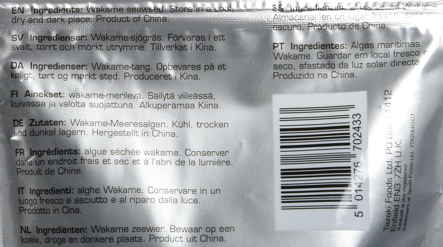 - Ingredients: Wakame seaweed [Undaria pinnatifida] (100%)