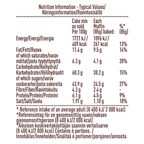 • Makes 6 decadent chocolate muffins per pack