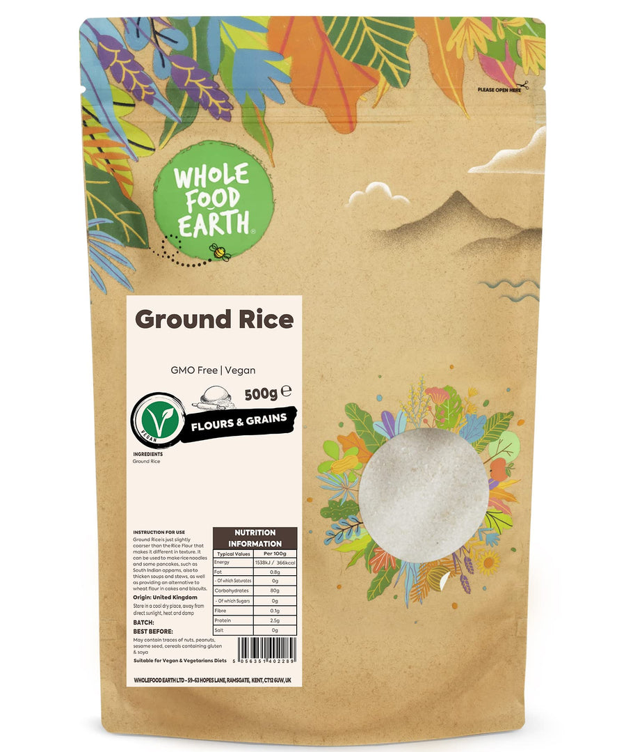 Wholefood Earth Ground Rice is a pure, GMO-free coarse rice product ideal for a variety of culinary uses. Sourced sustainably and processed with strict hygiene standards, this ground rice retains the full nutritional value of whole rice, making it a wholesome choice for health-conscious households.