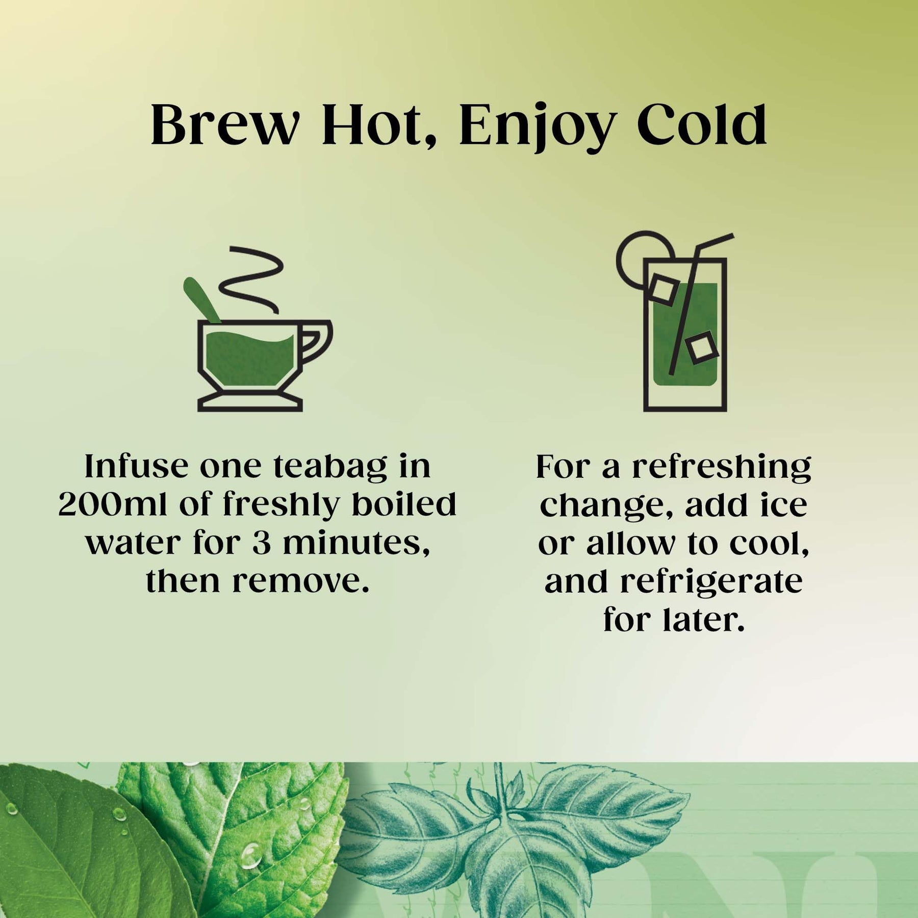 We've blended the delicate taste of green tea with refreshing mint - all you have to do is take a sip and feel revitalised. This delicious, cooling combination is an ideal lift for any time of day.