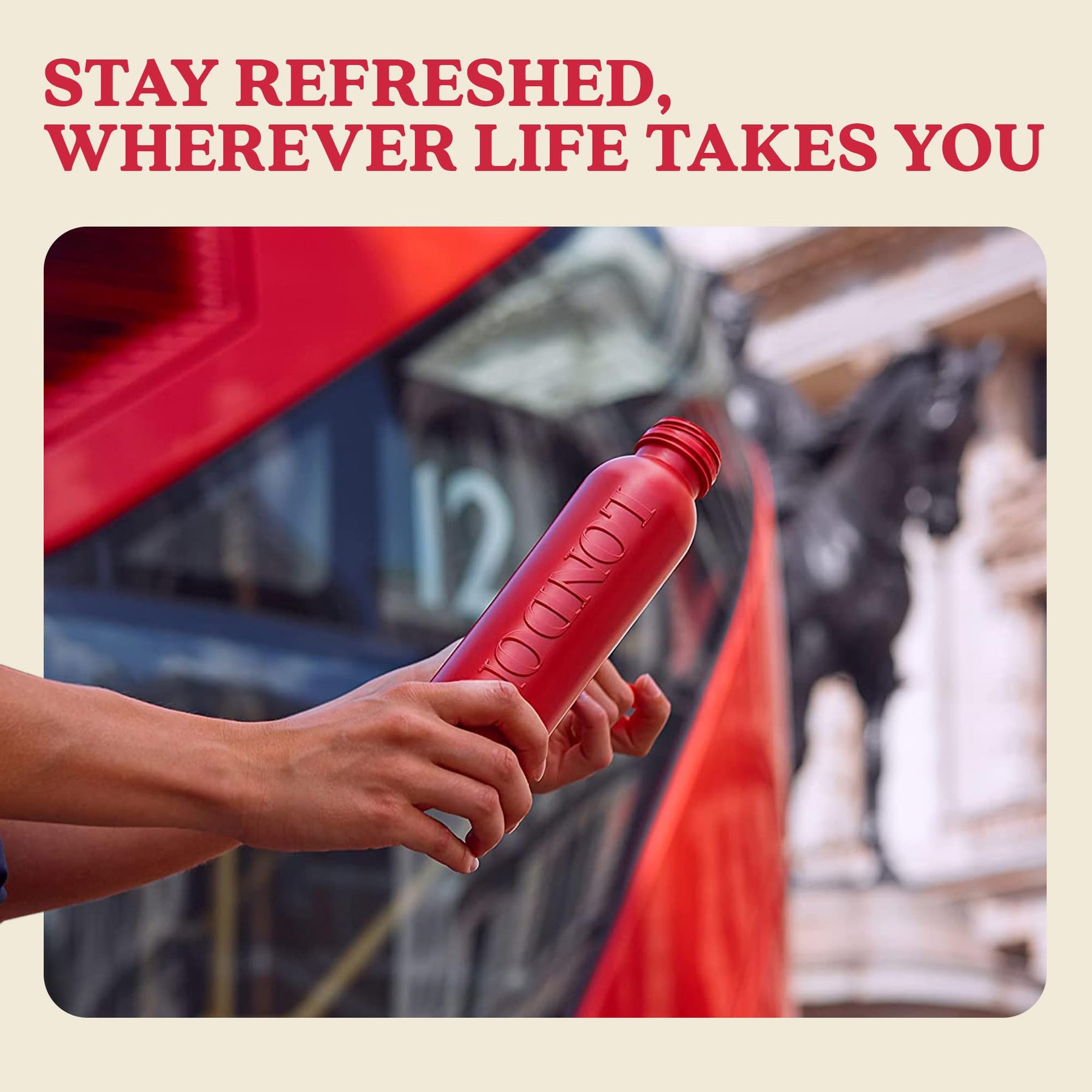 Available in vibrant colours including London Red, Stone Blue, and Champagne Pink, this durable and stylish bottle is ideal for daily hydration at the gym, school, or on the go. Easy to clean—simply rinse with hot water or place in the dishwasher for a thorough clean.