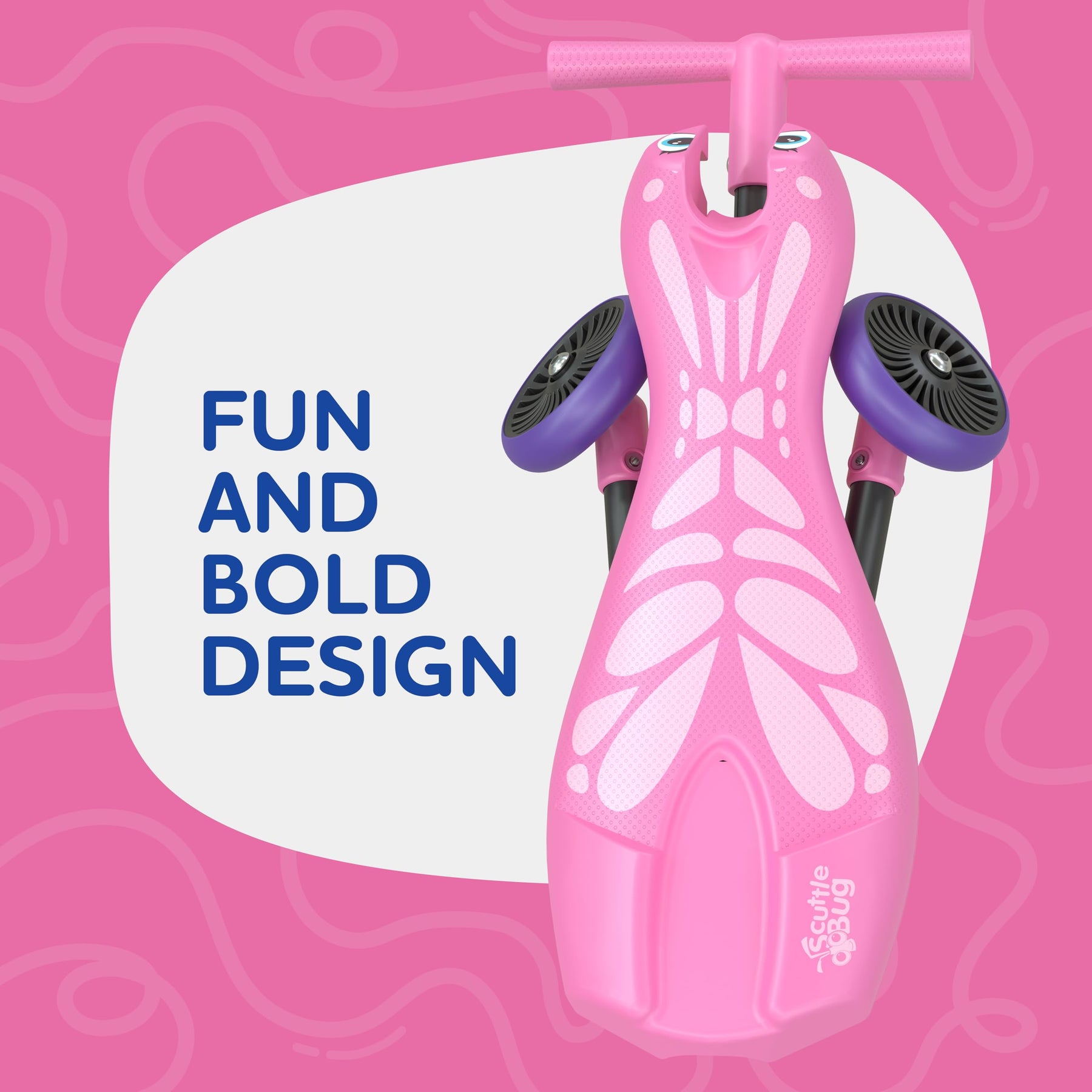 The Scuttlebug 3-Wheel Foldable Ride-On Tricycle is a fun and functional first ride-on for toddlers aged 12 months and up. With its charming butterfly bug face, antennae handlebar, and stable three-wheel design, this trike offers both entertainment and developmental benefits for young children.