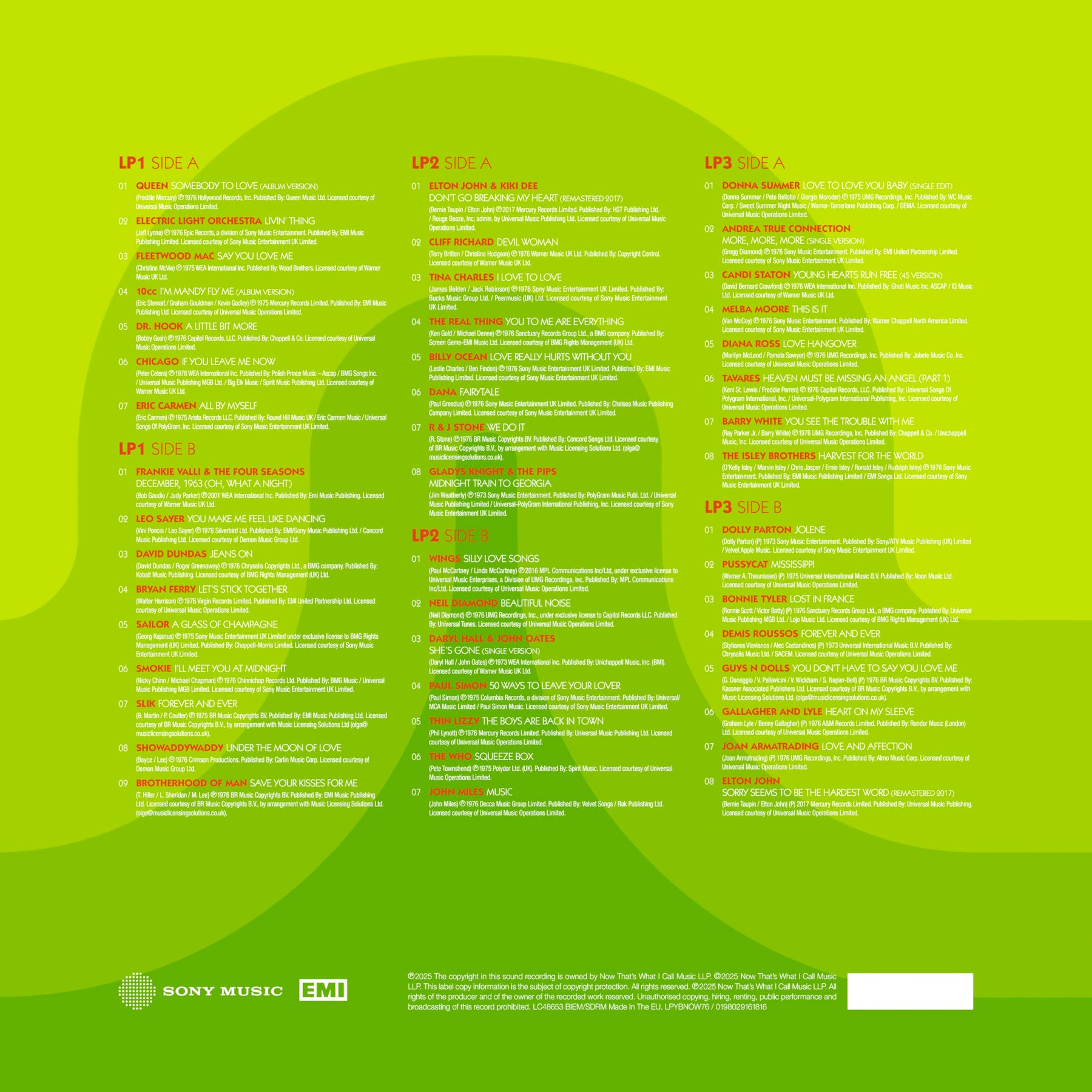 NOW celebrates the vibrant year of 1976 with the latest installment in its acclaimed 'Yearbook' series—pressed on eye-catching lime-green vinyl as a 3-LP set. This compilation features 47 iconic pop singles that defined the charts and culture of 1976, capturing the diverse sounds of an unforgettable era in music history.