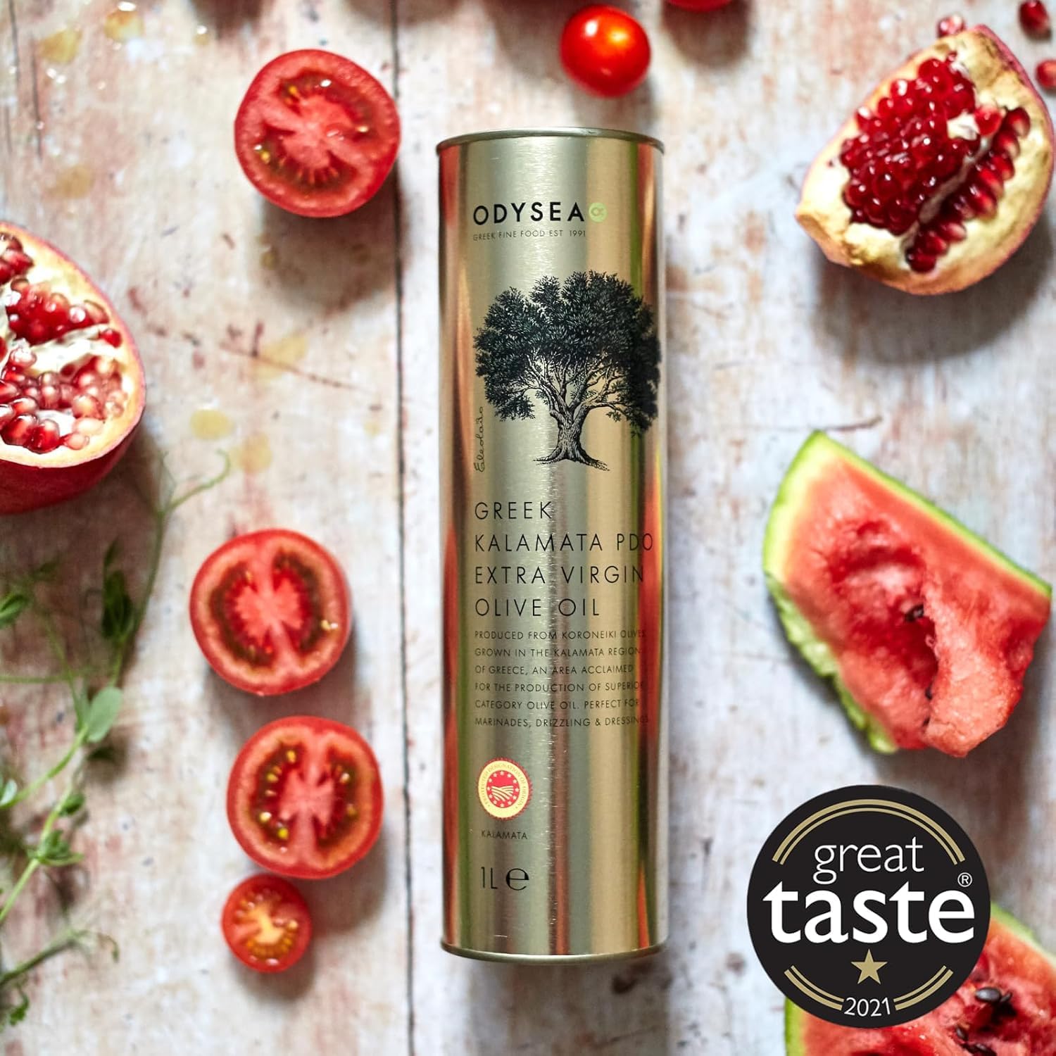 • Odysea Greek Kalamata PDO Extra Virgin Olive Oil, 1L Glass Bottle