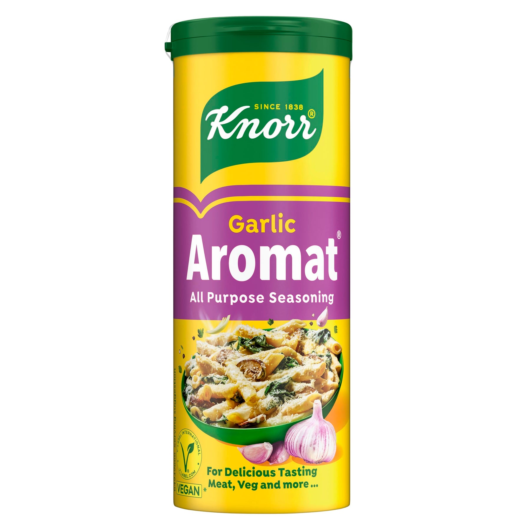 Knorr Aromat Garlic All Purpose Savoury Seasoning is a versatile, flavour-packed blend that enhances a wide variety of dishes with a rich garlic taste and a balanced mix of herbs and spices. Ideal for use in soups, stews, marinades, sauces, and more, this seasoning elevates everyday meals with minimal effort. Use it while cooking or at the table—just like salt and pepper—for instant flavour in every bite.