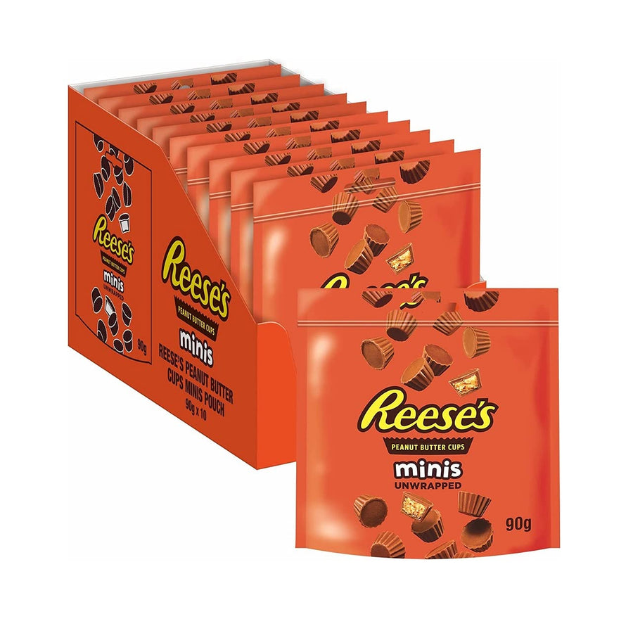 Indulge in the iconic combination of creamy peanut butter encased in smooth milk chocolate with Reese's Peanut Butter Cup Minis. Each 90g pouch delivers bite-sized treats that are perfectly unwrapped for easy, mess-free snacking—ideal for sharing, gifting, or enjoying solo. These mini cups are a favorite for movie nights, lunchboxes, or as a creative addition to desserts like cupcakes and cookies.
