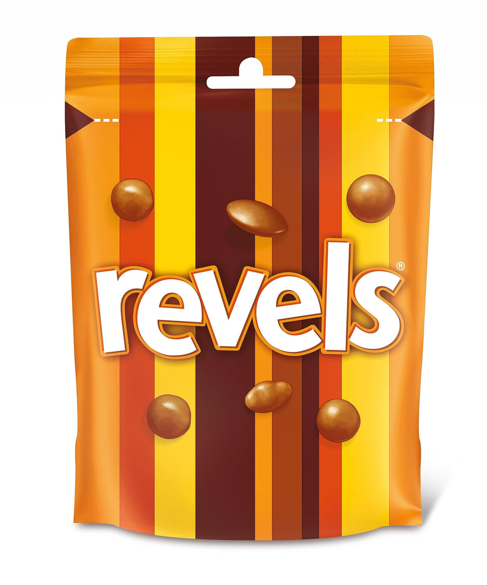 Enjoy a delicious mix of premium chocolates from Mars in every pouch of Revels. This variety pack features a delightful selection including smooth milk chocolate pieces, crunchy Maltesers, zesty orange chocolate, rich coffee chocolate, chewy chocolate-covered raisins, and sweet toffee pieces—perfect for satisfying diverse taste preferences.