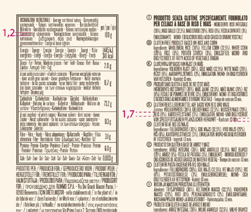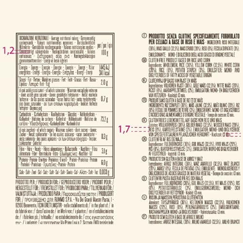 • Gluten-free rigatoni made with wholemeal rice, yellow corn, white corn, rice, and potato starch