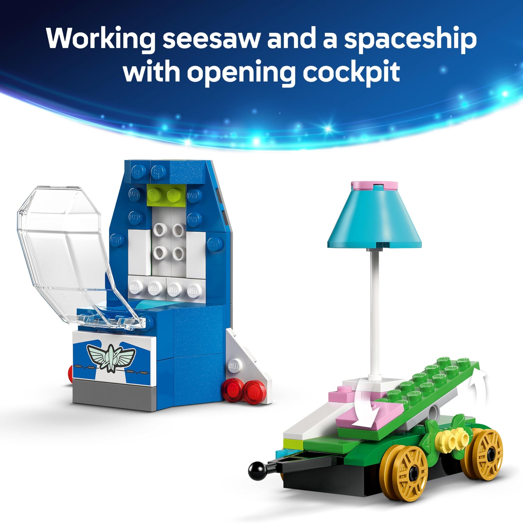 • 4 LEGO Disney minifigures: Woody, Jessie, Bo Peep, and Buzz Lightyear with attachable rocket pack